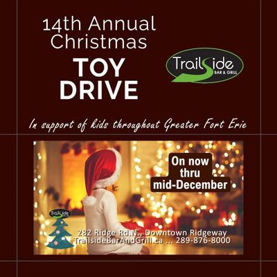 Our 14th(!!) Annual Toy Drive is officially underway. Each and every year you guys manage to outdo yourselves, so we're thanking you in advance for your amazing support with this year's campaign. Thanks to you and our friends from Stevensville Kinettes, we're going to do our very best to make this a magical Christmas for kids throughout Greater Fort Erie. To make a donation, drop off a new, unwrapped toy at Trailside anytime during business hours and let's see how high we can build that pile. Thanks guys!!